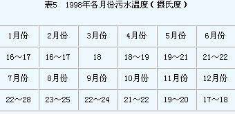 我們測定了1998年各月份的水溫,對照出水水質,未發(fā)現(xiàn)污水溫度的變化影響除磷工藝的正常運行。水溫記錄見表5。
