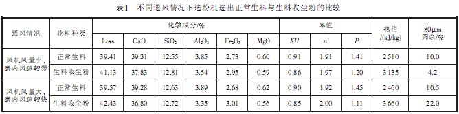 正常生料粉的2倍多,這時生料收塵粉中密度較輕的粗煤粒的含量和熱值明顯增加。