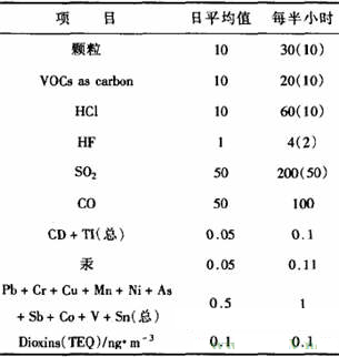 表1 焚燒爐有毒有害物質(zhì)的釋放限制(mg/m3)