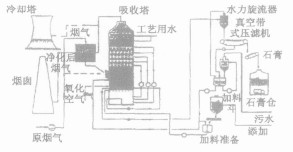 為更好地介紹煙塔合一排放技術(shù), 首先簡(jiǎn)單回顧一下與濕法脫硫工藝銜接的有關(guān)流程。圖1為一典型的濕法脫硫工藝流程圖。