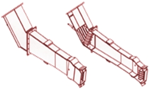 NO70W低氮燃燒器可以應(yīng)用于’W’火焰鍋爐。通過(guò)風(fēng)/粉的分配、混合和控制,達(dá)到減少NOx 的目的。三次風(fēng)通過(guò)外部風(fēng)口進(jìn)入,或在燃燒器內(nèi)有三次風(fēng)通道。NO70W燃燒器一直在改進(jìn)中。