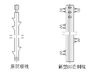 針對原有電場陰極線易變形、銹蝕的缺點(diǎn),采用了新型整體多刺BS芒刺線取代原陰極線(見圖2),提高了電場運(yùn)行質(zhì)量。該整體多刺BS型芒刺線所需起暈電壓低;放電強(qiáng)度高,電暈電流大;機(jī)械強(qiáng)度高,耐腐蝕;能維持準(zhǔn)確極間距離;便于清灰。