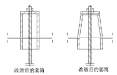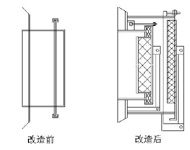 新型支撐絕緣套筒緊固后受力均勻,能夠不受環(huán)境溫度變化的影響,結(jié)構(gòu)更合理,不易發(fā)生破裂現(xiàn)象,提高了其絕緣性能。改造前后的套筒結(jié)構(gòu)示意圖見圖4。另外,振打裝置增加了振打錘配重,有效地提高了清灰效果。