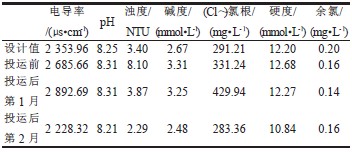 (2) 循環(huán)水水質(zhì)。為了保證煙塔填料的清潔, 煙塔循環(huán)水的水質(zhì)必須達(dá)到一定的要求, 特別是懸浮物的含量, 一般要求滿足普通循環(huán)水質(zhì)量標(biāo)準(zhǔn)即可,但由于脫硫凈煙氣帶入的石膏等影響, 因此煙塔的懸浮物含量可能會(huì)增加, 需要加強(qiáng)運(yùn)行監(jiān)督和定期清理。表2 是煙塔設(shè)計(jì)、投運(yùn)前和投運(yùn)后的水質(zhì)對(duì)比, 表中還未顯示出循環(huán)冷卻水濁度的明顯變化, 還需要進(jìn)一步觀察, 但循環(huán)水的另一個(gè)重要指標(biāo)- 冷凝水pH 值確實(shí)呈弱酸性。