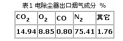 回轉(zhuǎn)窯經(jīng)過40多年不間斷的技術改造,臺時產(chǎn)量由原設計的13.9t/h提高到17.5t/h;處理的廢氣量由設計時的1.2×105m3/h增加到目前1.62×105m3/h;標況下入口含塵濃度由容許值的40g/m3增加到107.54g/m3;系統(tǒng)漏風率的增加使電場風速由設計時的0.833m/s上升到1.125m/s;收塵效率降至90%以下。電除塵器出口煙氣成分見表1。