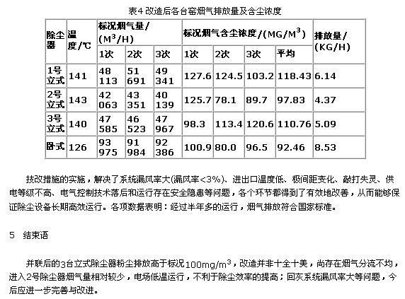 6)立式除塵器內(nèi)部增設2層折流板,加高雙室隔墻,更換恢復所有檢查門、采取堵漏措施,改造后漏風率≤3%,溫度提高了20℃左右。