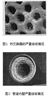 循環(huán)冷卻水系統(tǒng)中管道內(nèi)外表面結(jié)垢的主要成分是鈣鹽與鎂鹽,它們的溶解度隨溫度的增高而降低。當(dāng)循環(huán)冷卻水與加熱表面接觸時,如果溫度超過了化合物的溶解度時,這類鹽就會沉積在加熱表面上。