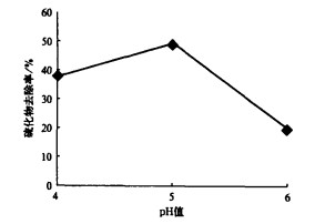 由圖2可知,pH值保持在5左右有利于硫的去除,酸的加入對(duì)去除硫化物有較大的影響,本實(shí)驗(yàn)選用pH=5。