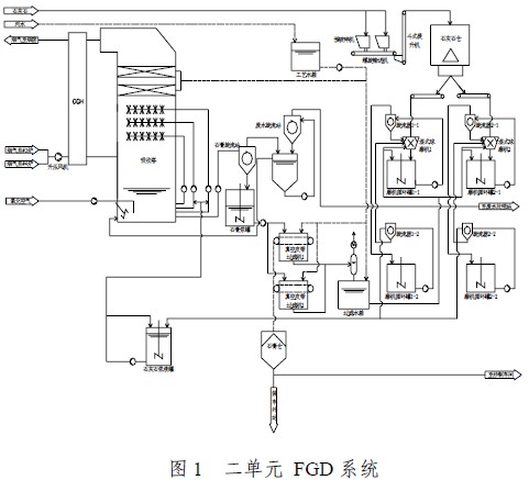熱電分公司鍋爐原設(shè)計燃煤為大同混煤(含硫量1.04),后改為燃用神華煤(含硫量0.5%),根據(jù)含硫量降低的實際情況,通過反復論證,在籌建二期脫硫時充分利用一期FGD設(shè)施和設(shè)備的富裕容量,簡化了部分系統(tǒng)的重復設(shè)置。兩套脫硫裝置的公用設(shè)施及系統(tǒng)包括控制室、石灰石卸料、石灰石漿液制備、石膏二級脫水、事故漿液箱、GGH吹掃系統(tǒng)、廢水泥餅壓濾以及石膏炒制和制板等。