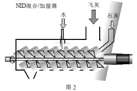 在立式反應(yīng)器中反應(yīng)后的煙氣進(jìn)入布袋除塵器( 或電除塵器) 顆粒狀粉塵被除塵器所收集, 被收集的顆粒的主要部分經(jīng)加濕器加濕后被再循環(huán)至NID 反應(yīng)裝置, 設(shè)于料斗中的料位控制系統(tǒng)可自動(dòng)控制進(jìn)入最終產(chǎn)物儲(chǔ)倉的產(chǎn)物量。