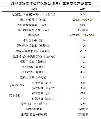 4  廢電冰箱的處理工藝方案及主要技術(shù)指標(biāo)