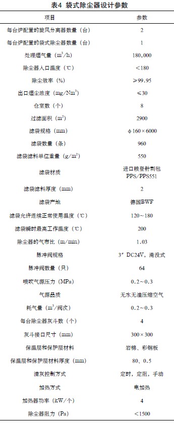 單臺(tái)袋式除塵器設(shè)計(jì)參數(shù)見(jiàn)表4。