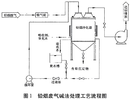 鉛煙廢氣堿法處理工藝流程如圖1所示。
