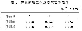 該套凈化設(shè)備投入運(yùn)行以后,運(yùn)轉(zhuǎn)正常, 在工人工作地點(diǎn)測(cè)定空氣的含鉛濃度,結(jié)果見表1。