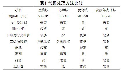 表1為幾種常見處理方法的技術(shù)性能比較。