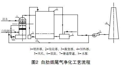 某煙廠白肋煙生產(chǎn)線在生產(chǎn)過程中產(chǎn)生大量異(臭)味氣體,對周圍環(huán)境污染十分嚴(yán)重,采用吸附-激發(fā)法對該部分尾氣進(jìn)行凈化處理,該工藝主要由洗滌塔、吸收塔、激發(fā)器、加熱器、風(fēng)機(jī)、水泵等組成。工藝流程如圖2所示。