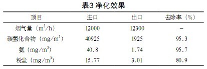尾氣經(jīng)吸附后其出口濃度見表3。