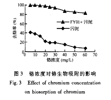吸附劑與污泥的協(xié)同促進作用,主要是由于活性污泥可以為生物吸附劑提供一個穩(wěn)定的緩沖環(huán)境,同時污泥中的微生物也具有一定的解毒能力 ;在該緩沖環(huán)境中,生物吸附劑對鉻的高效還原解毒能力是鉻生物去除的關(guān)鍵。還原后,高毒性的cr”被轉(zhuǎn)化為低毒性的Cr” ,有效地降低了鉻對污泥及FY01的毒性破壞,污泥仍能以菌膠團存在 。