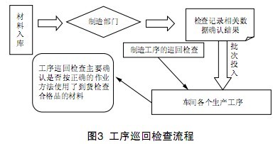 (3)加強對專用設(shè)備、工具及各種容器設(shè)施的管理,根據(jù)生產(chǎn)情況制定科學(xué)合理的設(shè)備維護制度,以保障設(shè)備正常使用效率及防止有害物質(zhì)的污染。在切換材料時,為了防止上次操作時的材料殘留,必須充分清洗使用設(shè)備。工序巡回檢查流程見圖3。