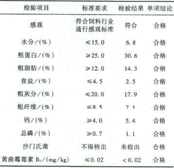 餐廚垃圾生產(chǎn)過程嚴(yán)格執(zhí)行中華人民共和國飼料衛(wèi)生標(biāo)準(zhǔn)GB13078-2001。我們采用通行的飼料質(zhì)量標(biāo)準(zhǔn)及檢驗方法對本工藝處理后的餐廚垃圾的蛋白飼料進(jìn)行了抽樣檢測,結(jié)果如表4所示。