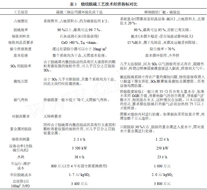 硫銨法與循環(huán)流化床法燒結(jié)煙氣脫硫技術(shù)的比較