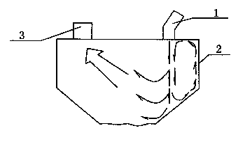 因為燒結(jié)13皮帶機的卸料方式為三通卸料,有一半燒結(jié)礦直接落入料倉,而另一半料則通過第三筒落到皮帶上繼續(xù)向3、4爐供料。根據(jù)實際情況,對5、6爐槽上采取針對卸料車的頂吸式除塵法,這一方案能解決卸料車第三通的揚塵問題,并且可以兼顧到料倉的除塵。由于該方案在卸料桶中吸塵方向與料速方向相反,所以料倉除塵效率要受到影響。為此,進行了如下改進(見圖4):首先將三通改為兩通,封閉卸料桶1,同時封閉對應(yīng)的料倉開口;其次加寬、加高卸料桶2,以盡量減輕料速對吸塵的負面影響;最后對卸料桶3與皮帶之間進行接觸式密封,由于這種除塵設(shè)計要求卸料車定點卸料,只留一個下料口,使揚塵點能集中在有負壓的卸料桶口處,盡量減少倉內(nèi)粉塵的溢出。 