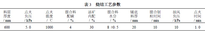 燒結杯試驗在包鋼煉鐵廠實驗室進行,其燒結工藝參數(shù)見表3 。