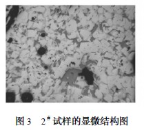 對轉鼓強度最優(yōu)的3 # 試樣( R2.5 、MgO 1.60 %、SiO2 4.0 %、配碳3.8 %) 和轉鼓強度較差的2 # 試樣(R1.6 、MgO 2.8 %、SiO2 5.2 %、配碳4.0 %) 進行了礦相分析。其礦物組成列于表 5 ,燒結礦顯微結構見圖2 和圖3 。