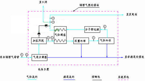 3.3 垃圾衛(wèi)生填埋場(chǎng)集氣站、總管布置及流程: