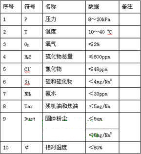 4.4 《QC-03》氣體預(yù)處理系統(tǒng)處理后的氣體主要指標(biāo):