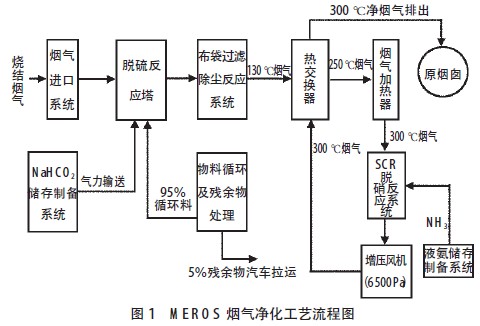 西門子奧鋼聯(lián)公司MEROS+SCR脫硫脫硝工藝流程見圖1。