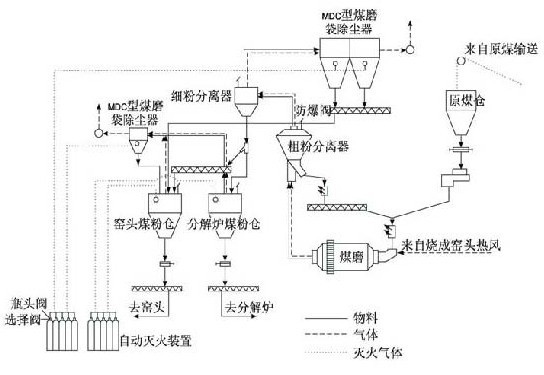 圖3 某水泥廠煤粉制備工藝系統(tǒng)