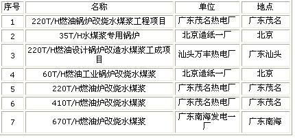 3、水煤漿代油燃燒技術部分工程應用