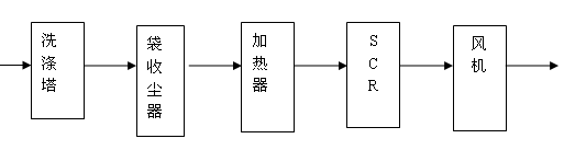 一般SCR設(shè)備裝設(shè)在控制流程的末端布袋除塵的后面,構(gòu)造成蜂巢式。此時布袋收塵器需使用膜技術(shù)(如Gore-Tex®)可以避免催化劑被粉塵阻塞。一般SCR對含PCDD/PCDFs的反應(yīng)溫度在200°C~350°C。典型的SCR流程圖如圖4: