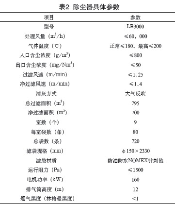 (2)溫度的控制:一般NOMEX濾袋承受溫度為 200℃,所以處理設(shè)施進口溫度應(yīng)控制在200℃以下,通過煙管后的煙氣到達除塵器箱體時,溫度都能降到 200℃以下。為保護布袋不被意外燒損,在袋式除塵器的入口處煙道上裝有一個安全閥,設(shè)有高、低溫保護裝置,可延長濾袋使用壽命。