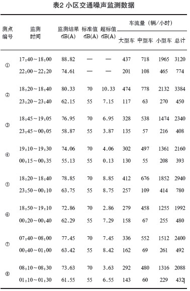 本次噪聲監(jiān)測(cè),進(jìn)行了噪聲及噪聲衰減監(jiān)測(cè),并同步記錄車流量,結(jié)果見表2。