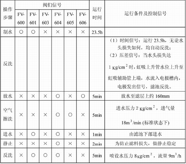 濾層膨脹率30%~50%,沖洗時(shí)間為3.5~ 5min,反洗強(qiáng)度分別為10~14.3L/(m2·s)。