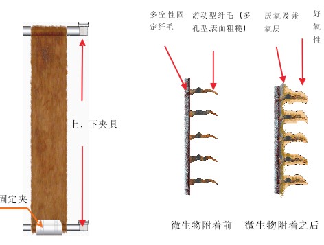 | 圖6 纖毛狀生物填料微生物附著示意 |