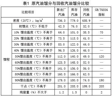 2.2 冷凝法回收汽油的餾分優(yōu)于汽油原指標