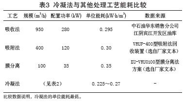 2.3 冷凝法油氣回收處理的單位能耗最低