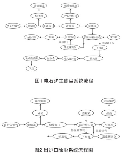 電石爐除塵工藝將電石爐煙氣與出爐口煙氣分別獨(dú)立處理。這樣做的優(yōu)點(diǎn)有: