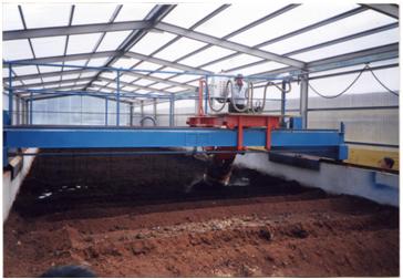 槽的長度和預(yù)定的翻堆次數(shù)決定了堆制周期。建議的鼓風(fēng)槽式堆肥系統(tǒng)的堆肥周期為2~4周。槽式堆肥系統(tǒng)的最大優(yōu)點是堆肥周期短、堆肥產(chǎn)品質(zhì)量均勻以及節(jié)約勞動力。盡管如此,整個系統(tǒng)的成本是比較高的。
