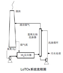美國BOC公司開發(fā)的LoTOx是一種低溫氧化技術(shù),將氧/臭氧混合氣注入再生器煙道,將NOX氧化成高價(jià)態(tài)且易溶于水的N2O3和N2O5,然后通過洗滌形成HNO3。