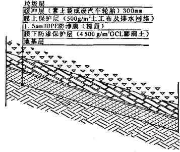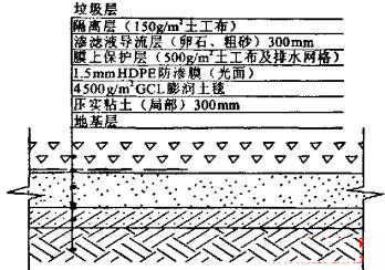 圖1填埋場(chǎng)區(qū)水平防滲結(jié)構(gòu)示意