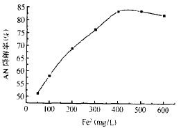 圖2  Fe2 + 濃度對(duì)AN 降解率的影響