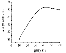 由圖4 可見,隨溫度升高,加速主反應(yīng)進(jìn)行并激活了自由基,降解率升高,在40 ℃時(shí)取得最佳降解效果;繼續(xù)升高溫度,H2O2 分解,阻礙反應(yīng)進(jìn)行,降解率下降, 研究表明增加壓力可以緩解H2O2 熱分解[9 ] 。但在整個(gè)反應(yīng)溫度范圍內(nèi),溫度變化對(duì)丙烯腈降解并沒有顯著影響。