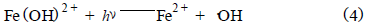 鐵離子催化分解H2O2主要通過(guò)Fe2 + 、Fe3 + 之間的相互轉(zhuǎn)化進(jìn)行,由于k1 m k2 ,導(dǎo)致反應(yīng)過(guò)程中 Fe2 + 很快被氧化成Fe3 + ,而Fe3 + 在酸性條件下主要是以Fe (OH) 2 + 形式存在,在紫外或近紫外光照射下發(fā)生如下反應(yīng):