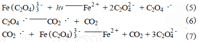 在雙氧水存在下當(dāng)草酸鐵受到光的照射時(shí),也可發(fā)生Fenton 反應(yīng):