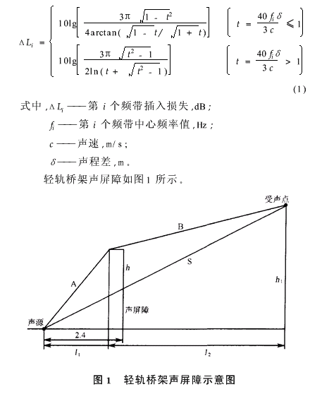 計算聲屏障插入損失常采用“無限長聲屏障對無限長線聲源“的計算方法[2],即