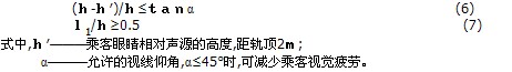 由于建筑限界、觀察、橋梁承重、環(huán)境協(xié)調(diào)等因素制約,高架軌道聲屏障高度不宜超過軌頂1.8~2.5m,列車聲源高度在軌頂以上0.45m[4],則有效高度h≤2.1m;軌邊矮墻的高度略高于車輪,輕軌輪徑一般小于0.9m,因此,取有效高度h≤0.55m。同時考慮乘客的視覺舒適性要求和不應使其產(chǎn)生環(huán)繞感,即